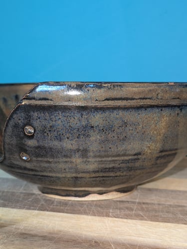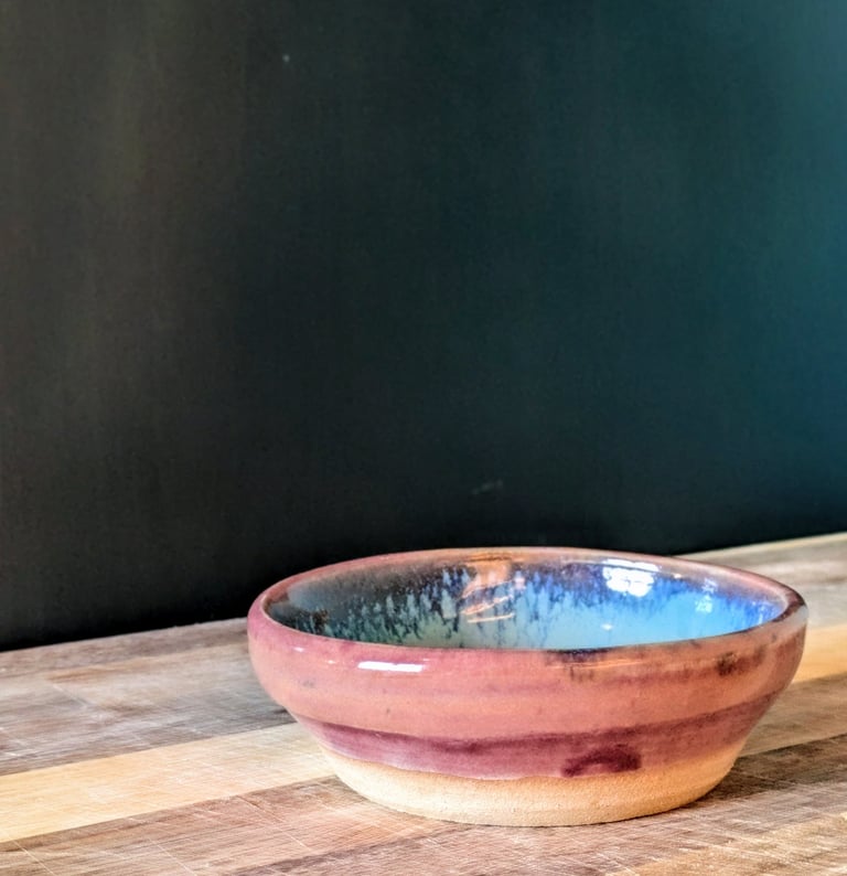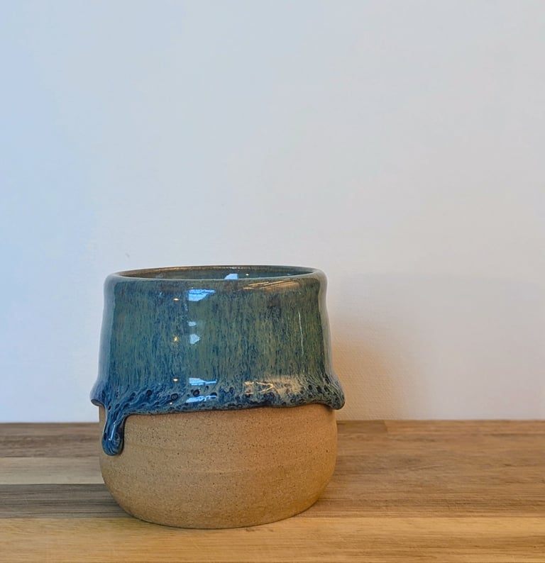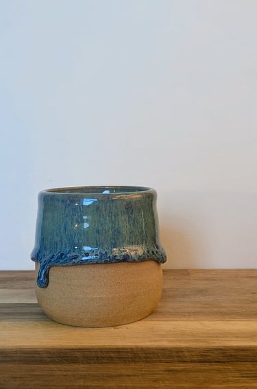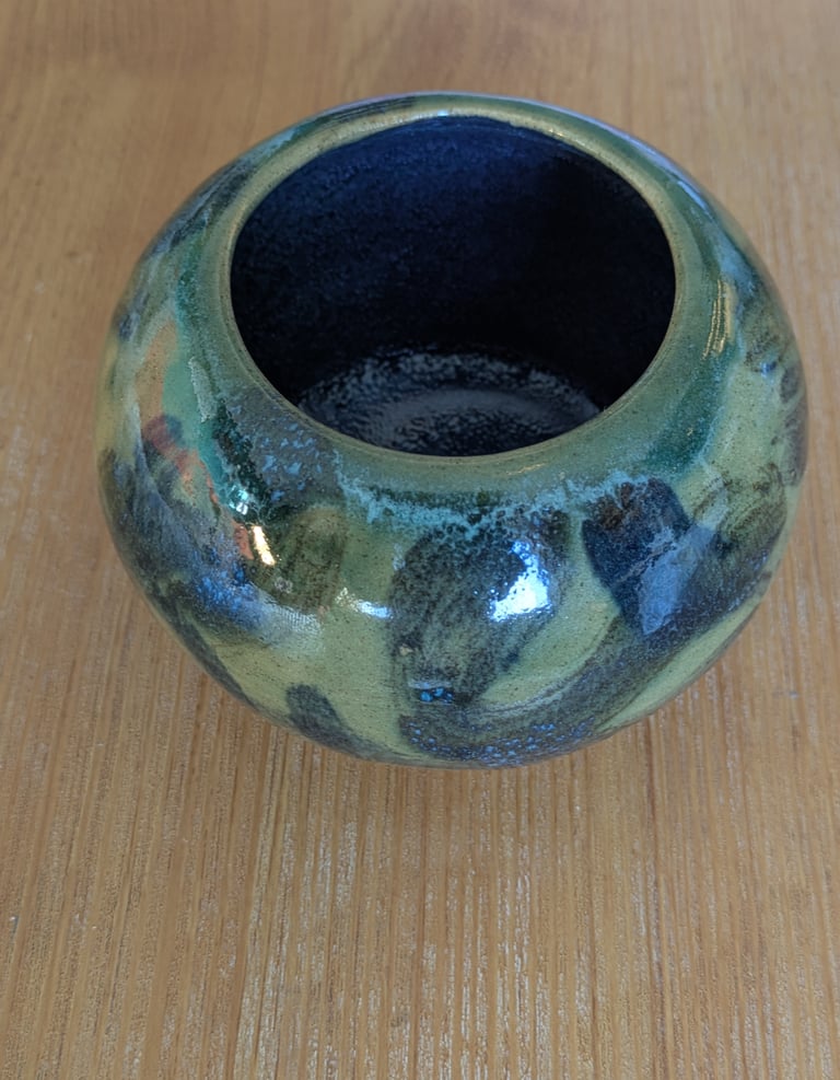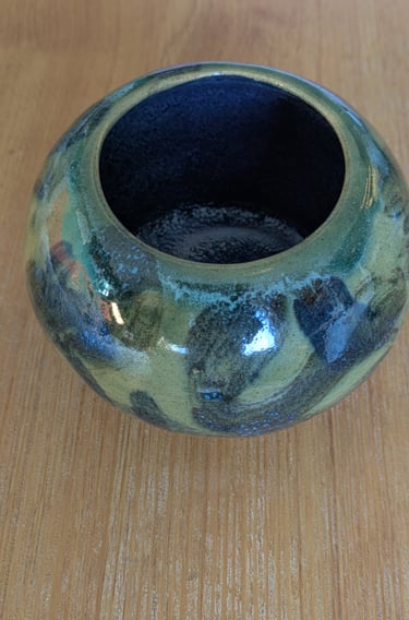 My first pot, was terrible. He collapsed on attempt one, and I reformed him into a vaguely centered lump (I would not recommend doing this), and reformed him anyway, and somehow he survived. He was also the first I ever glazed - which went remarkably well, and what got me hooked. The magic of the kiln. What looks like a mess goes in, and vibrant, earthly colours come out.